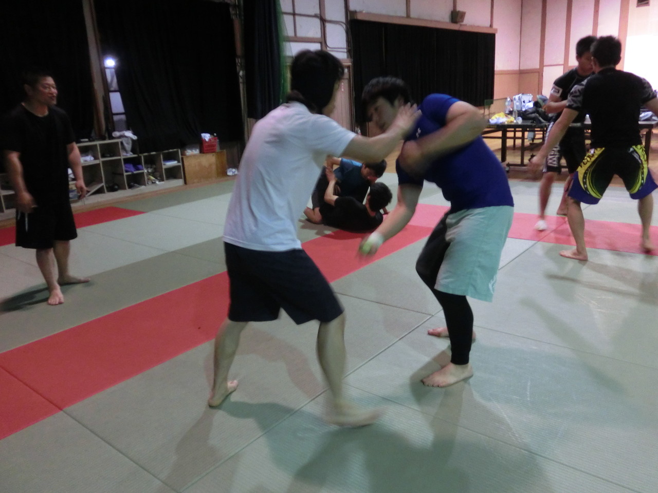 寝技チーム、打撃チーム共に適度な人数が集まり、混みすぎず・ガランとしすぎずの丁度いい感じの練習スペースで実践練習を行いました