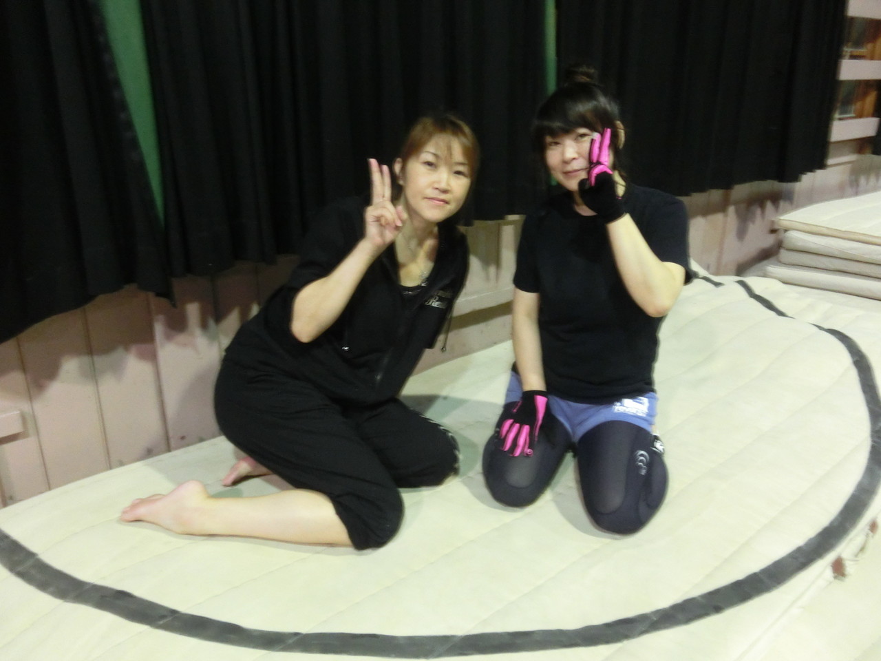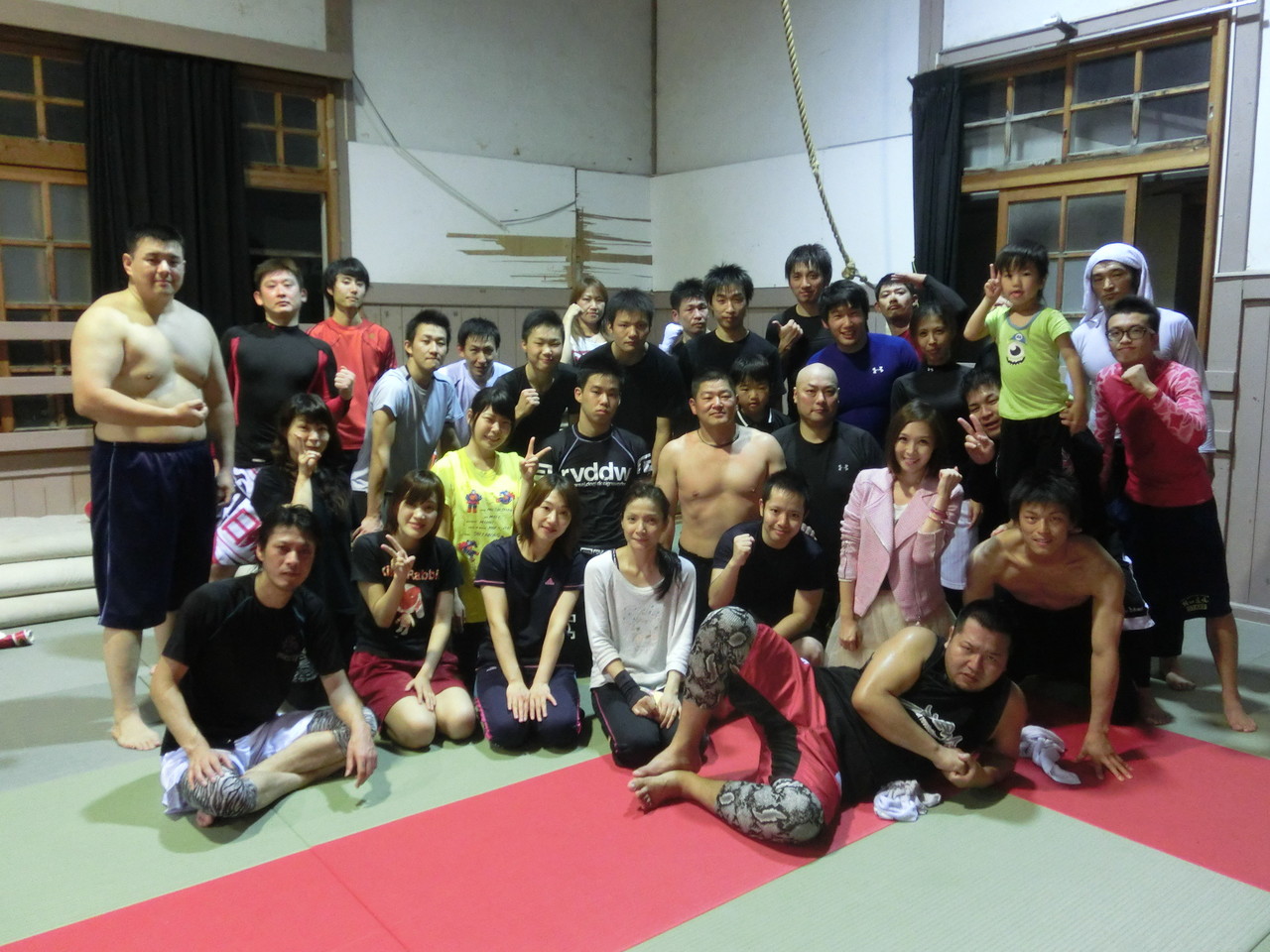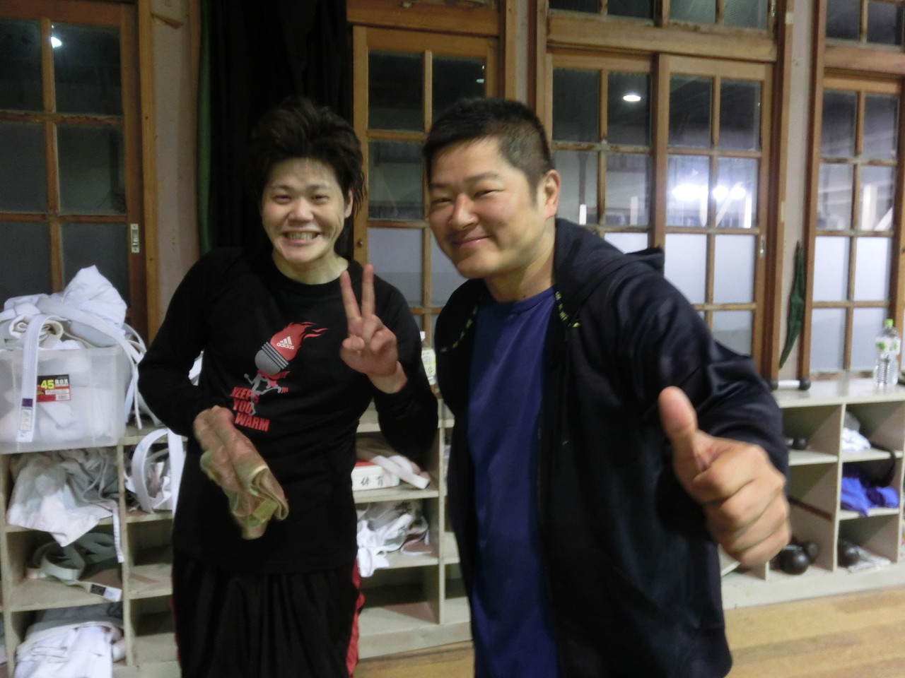 練習内容ですが、いつもどおり準備運動のあと、打撃組・寝技組に分かれ、寝技組は基礎練習を、打撃組もミットを使った攻撃・防御の練習を行い、その後、みんなでスパーリングを回していきました。![]()