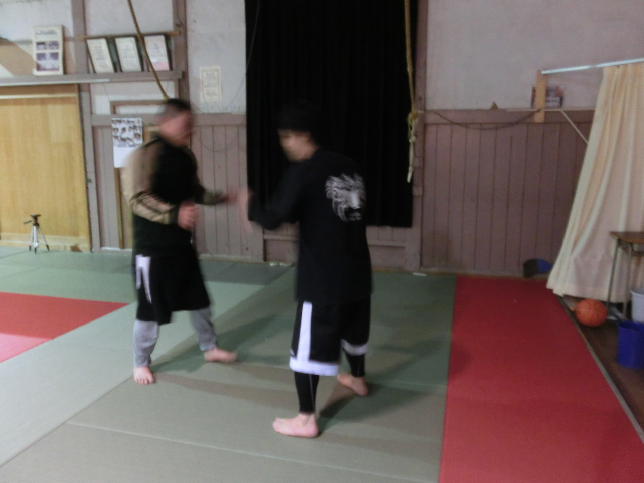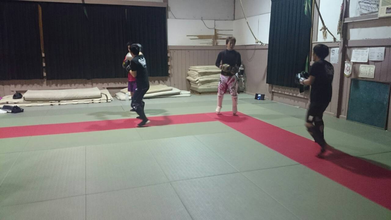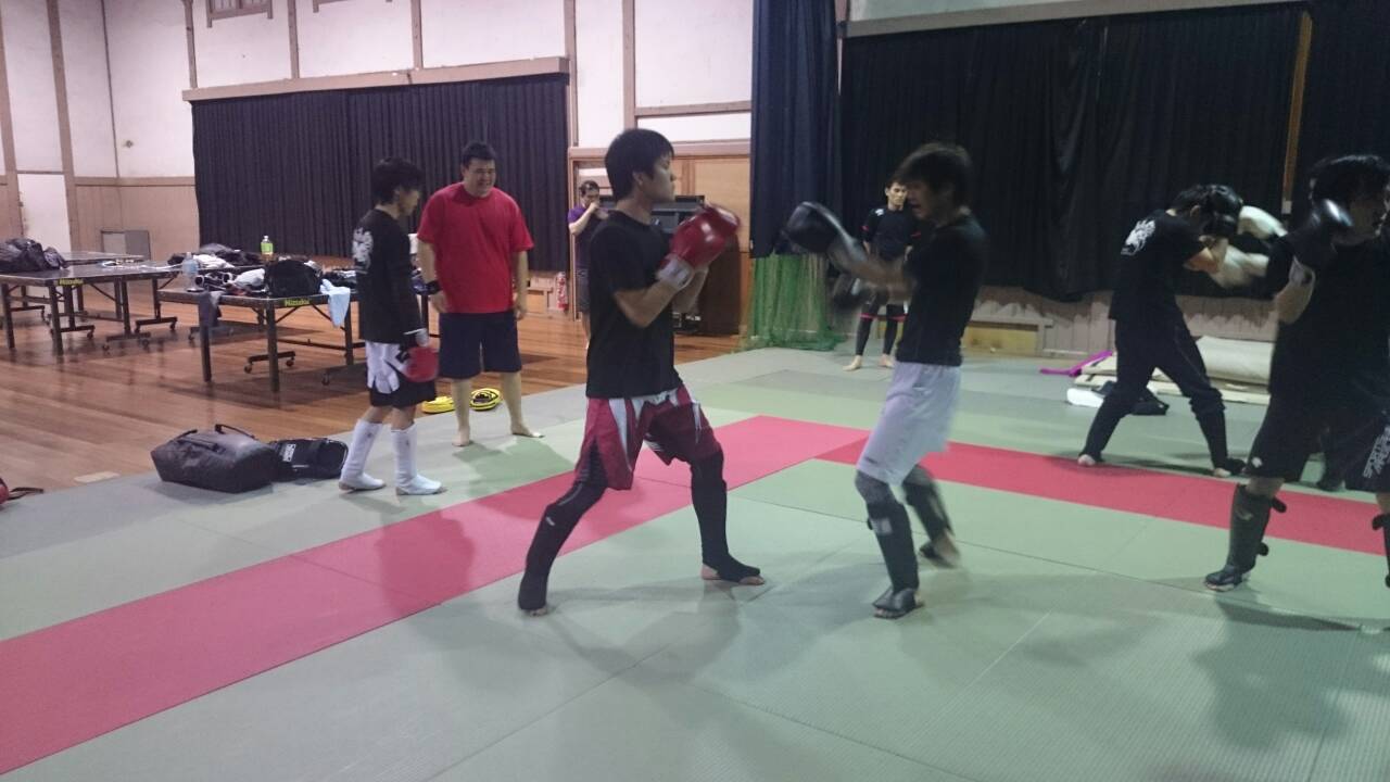 今回は、打撃組のメンバーが寝技組に比べて少な目だったので、寝技組がスペースを広めに使い