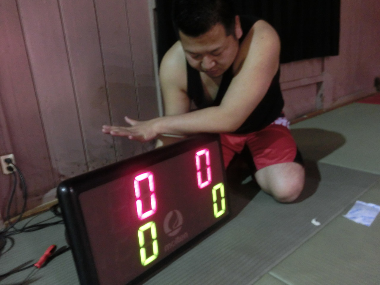 先週からタイマーが故障していたため、それぞれ時計を見ながらスパーリングを行っていたのですが、気付いたら時間がオーバーしていたり、何かと不便でした