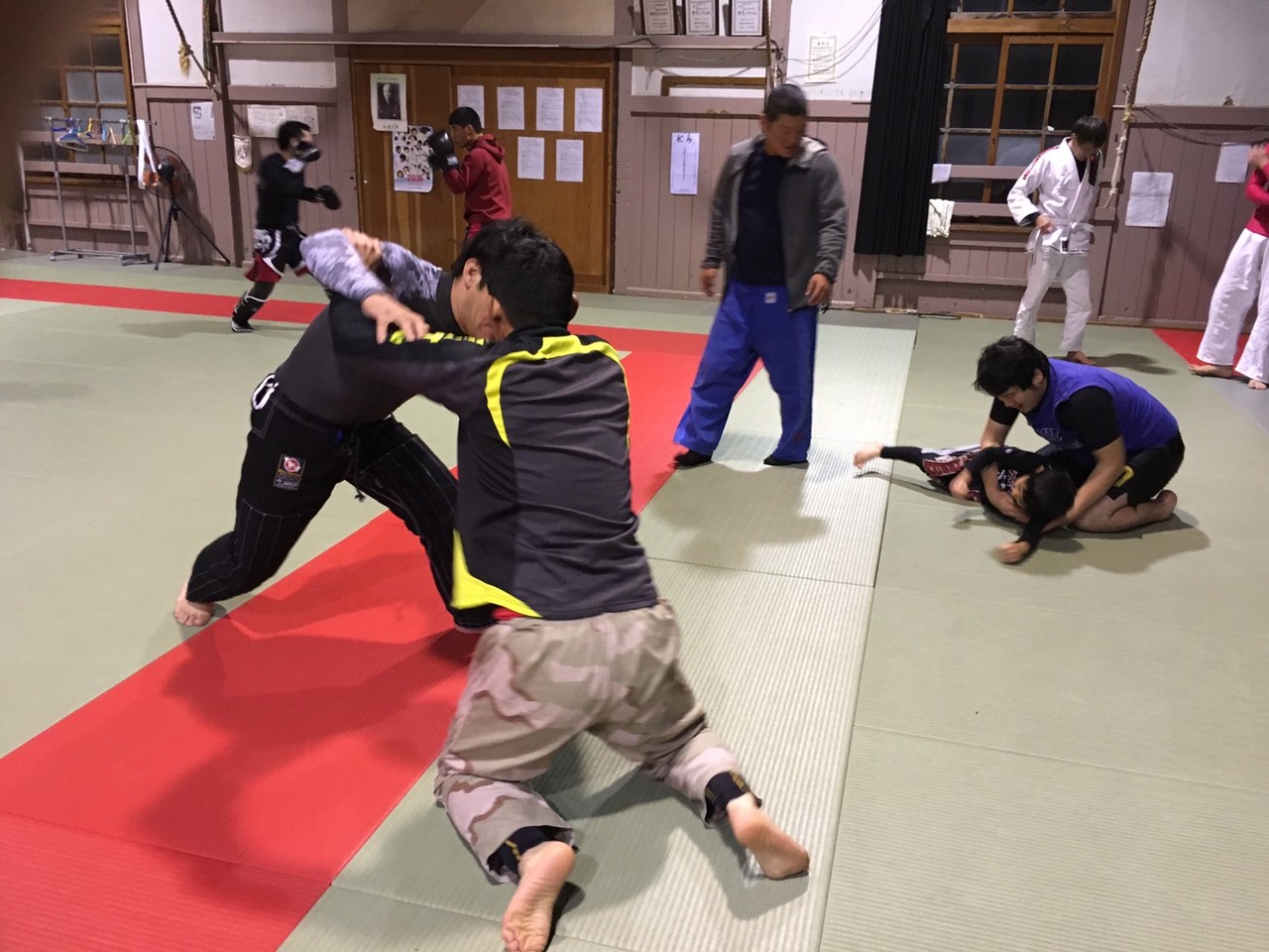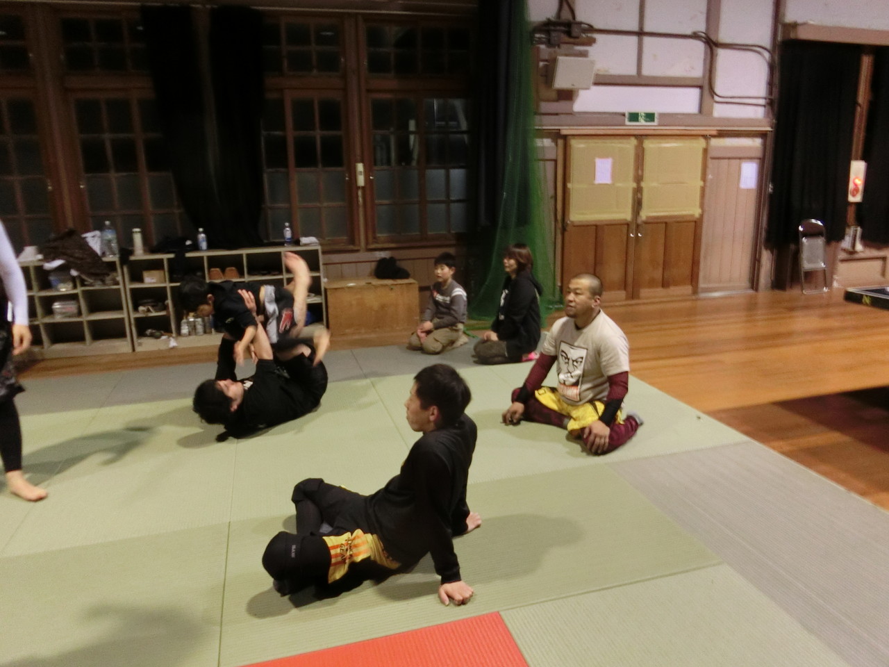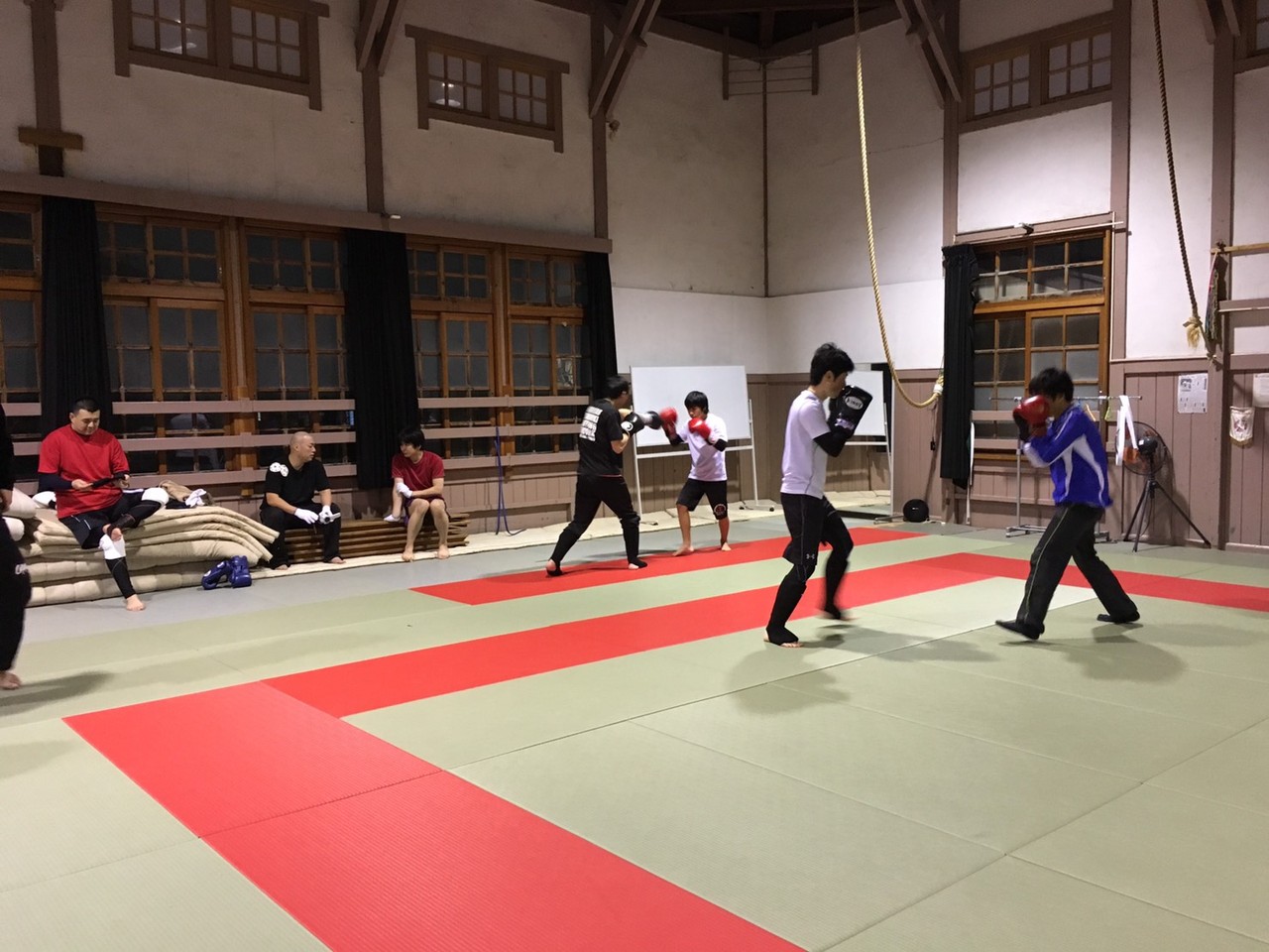 通常通り、準備運動のあと打撃組・寝技組に分かれ、寝技組は基礎練習を、打撃組もミットを使った攻撃・防御の練習を行い、その後、スパーリングを行いました![]()