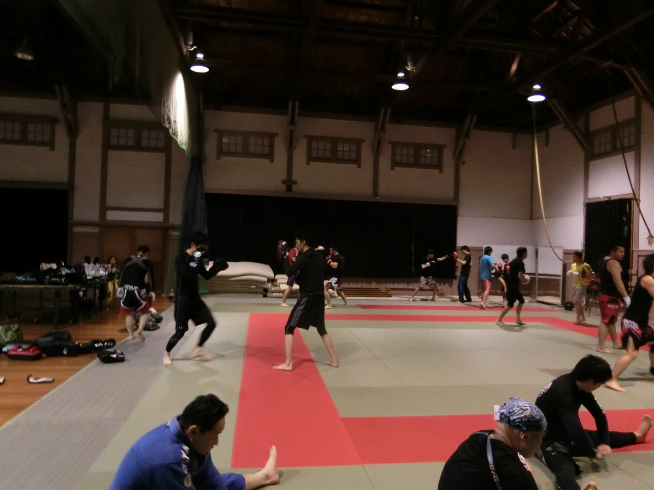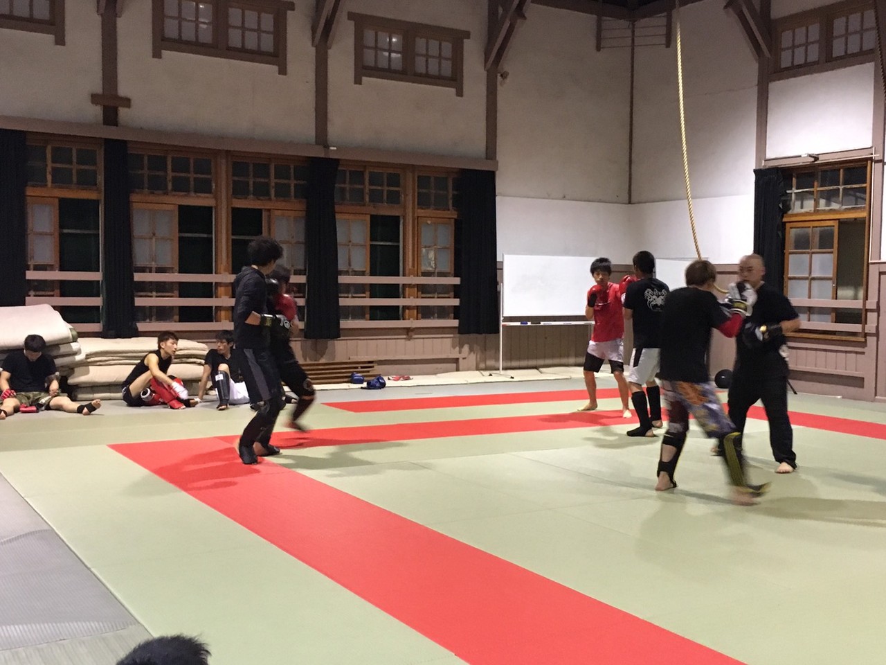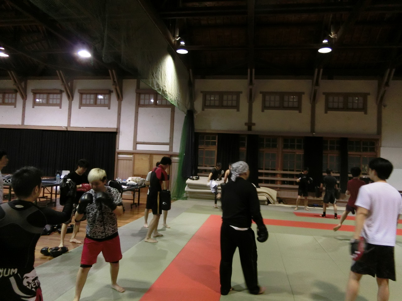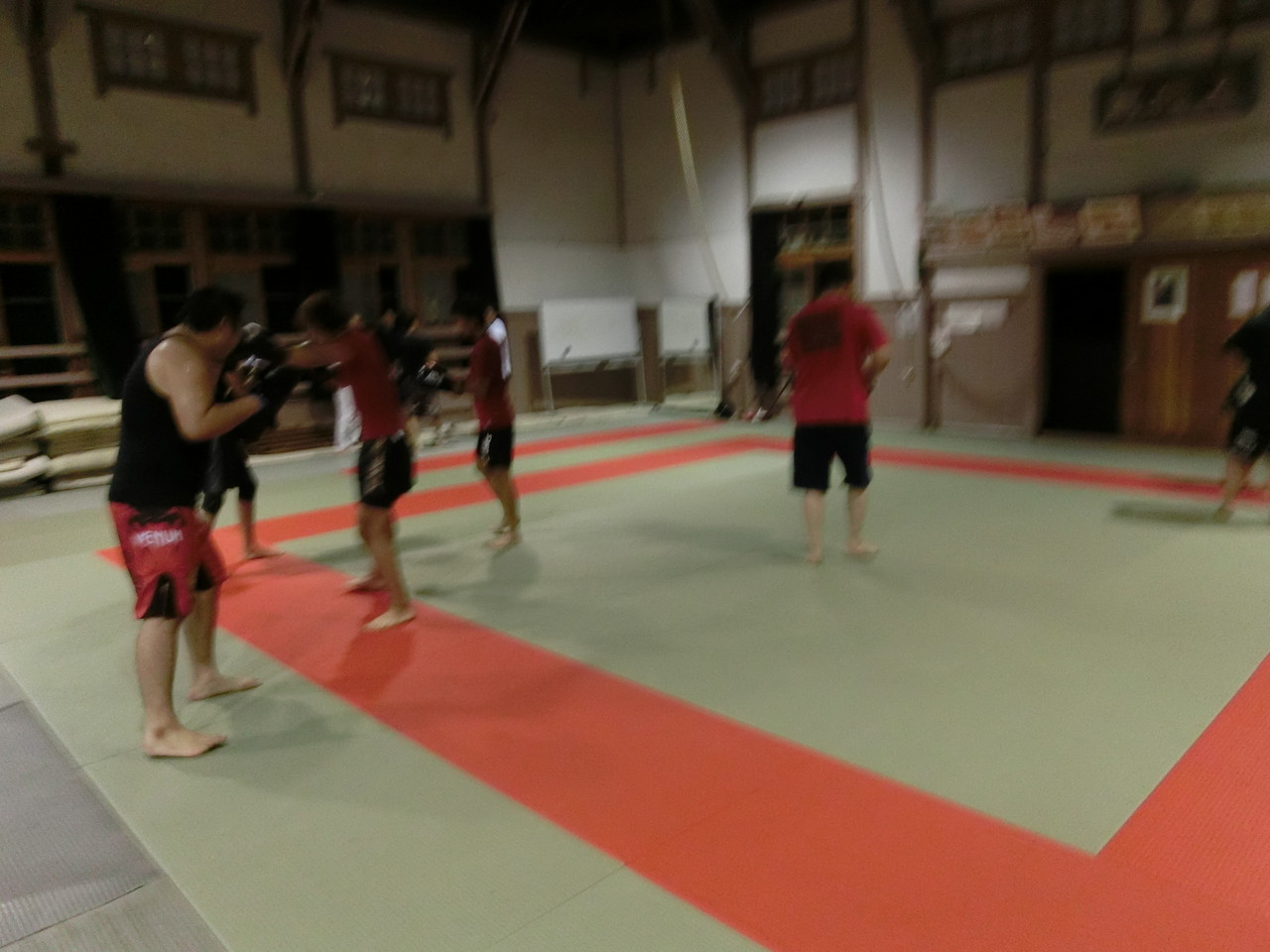 室内の湿度と気温で汗が噴き出す中、スパーリングを回して行きましたが、吸い込む空気の暑さで、体内のスタミナがもって行かれる感覚を味わいました・・・さすがに連続で何ラウンドも行うのは難しかったので、こまめに水分補給と休憩を取りながらの実践でしたが、それでも十分スタミナ強化トレーニングになった気がしました