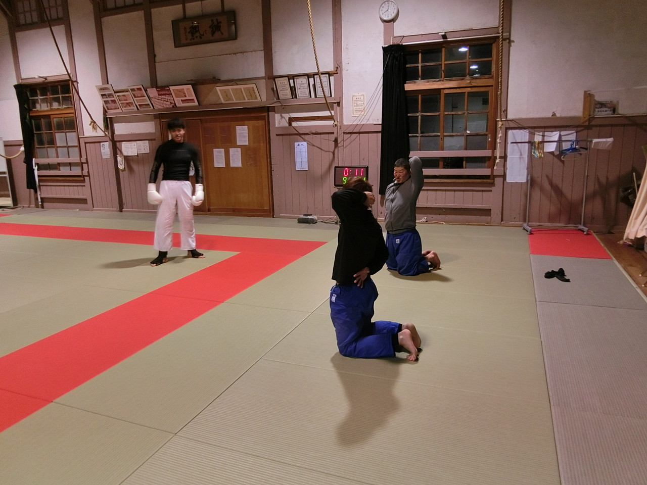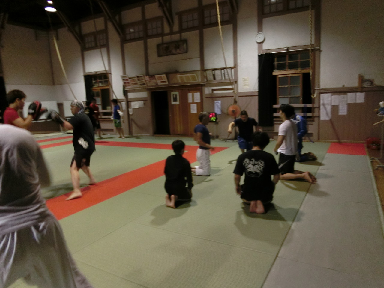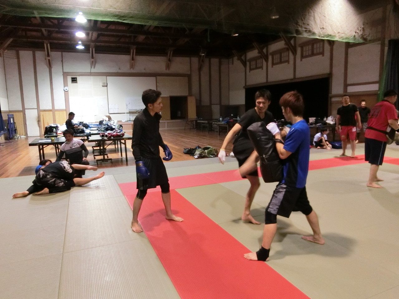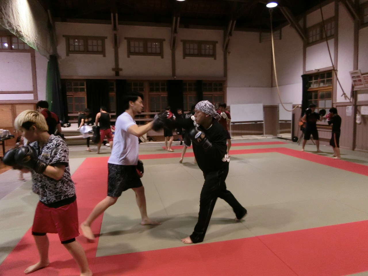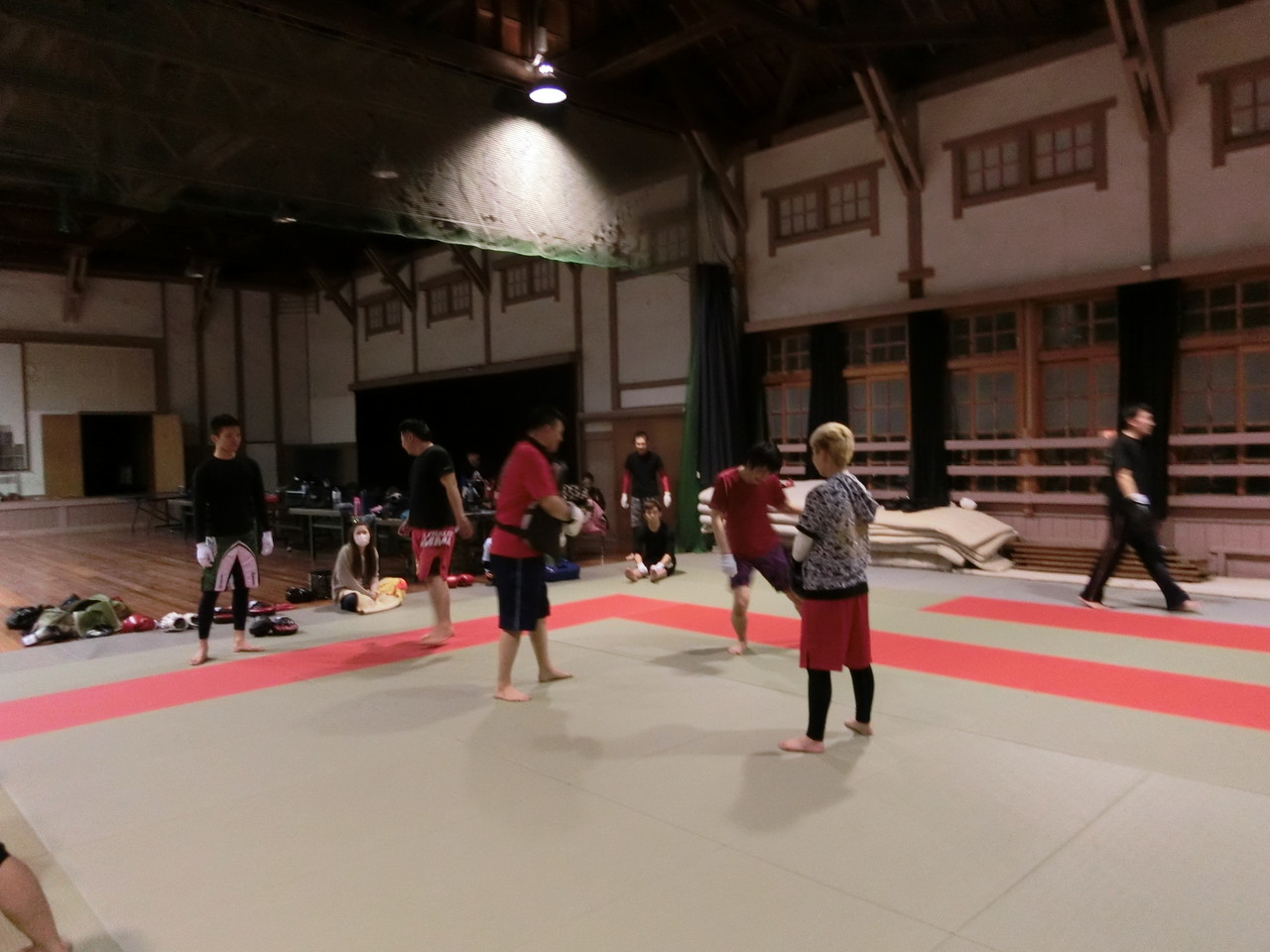 室内の湿度と気温で汗が噴き出す中、スパーリングを回して行きましたが、吸い込む空気の暑さで、体内のスタミナがもって行かれる感覚を味わいました・・・さすがに連続で何ラウンドも行うのは難しかったので、こまめに水分補給と休憩を取りながらの実践でしたが、それでも十分スタミナ強化トレーニングになった気がしました