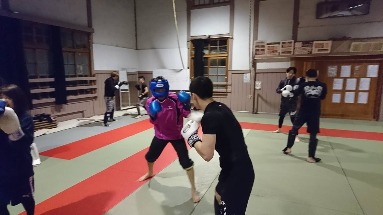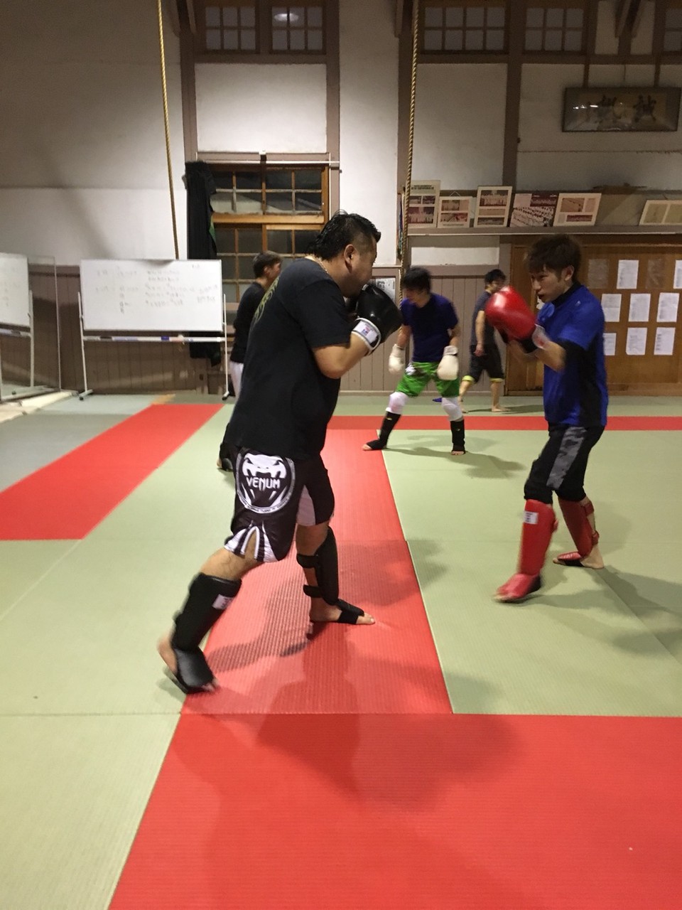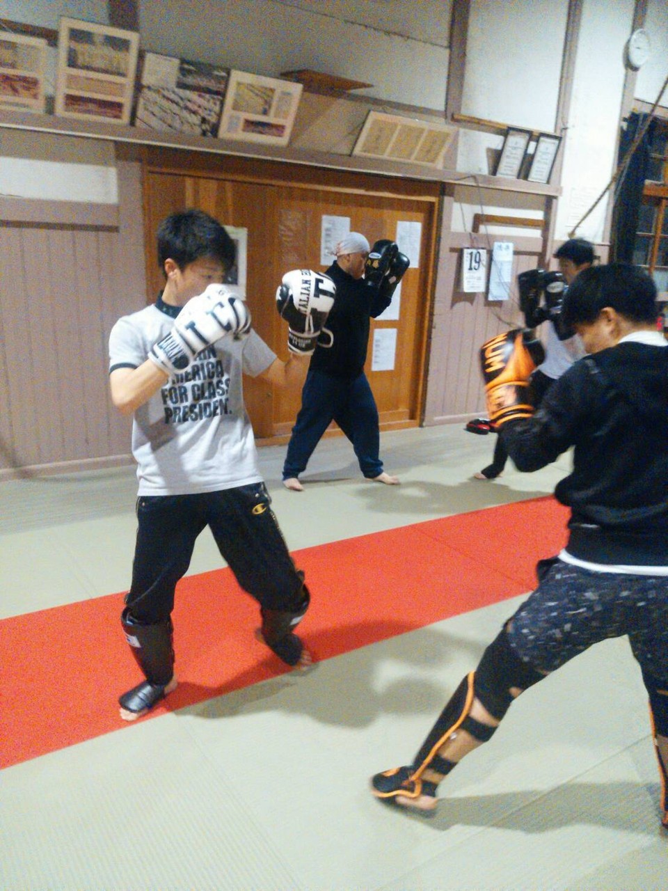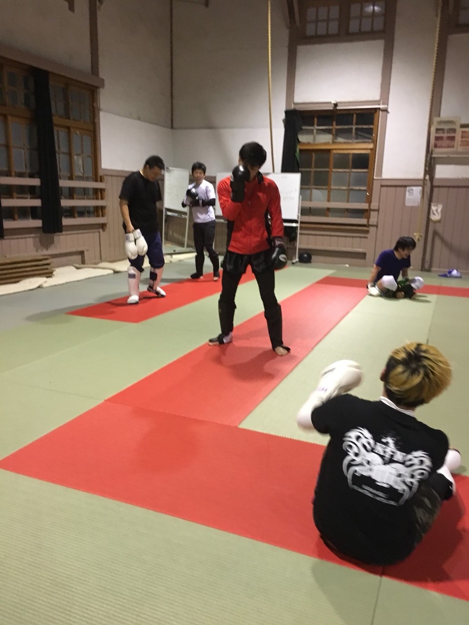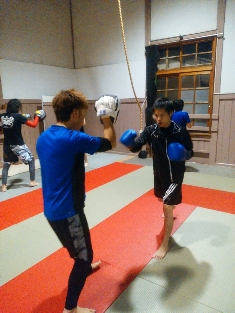 今回も備運動のあと打撃組・寝技組に分かれ、寝技組は基礎練習を、打撃組もミットを使った攻撃・防御の練習を行い、その後、スパーリングを行いました![]()