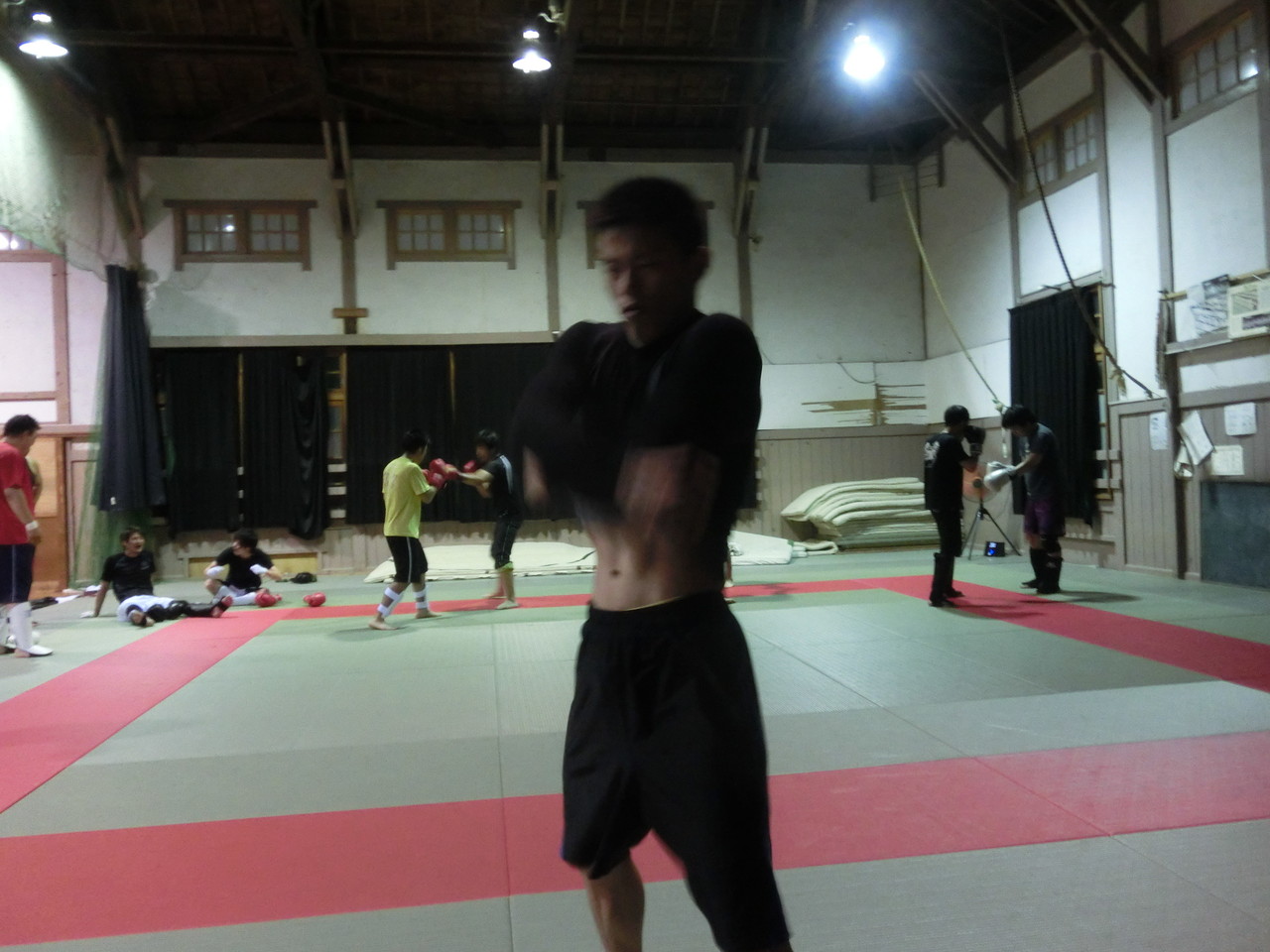 練習内容についてですが、通常どおり準備運動のあと、打撃組、寝技組に分かれ、前半は打撃組はミット、寝技組は対人練習を行いました。その後に、みんなでスパーリングを回していきました。![]()